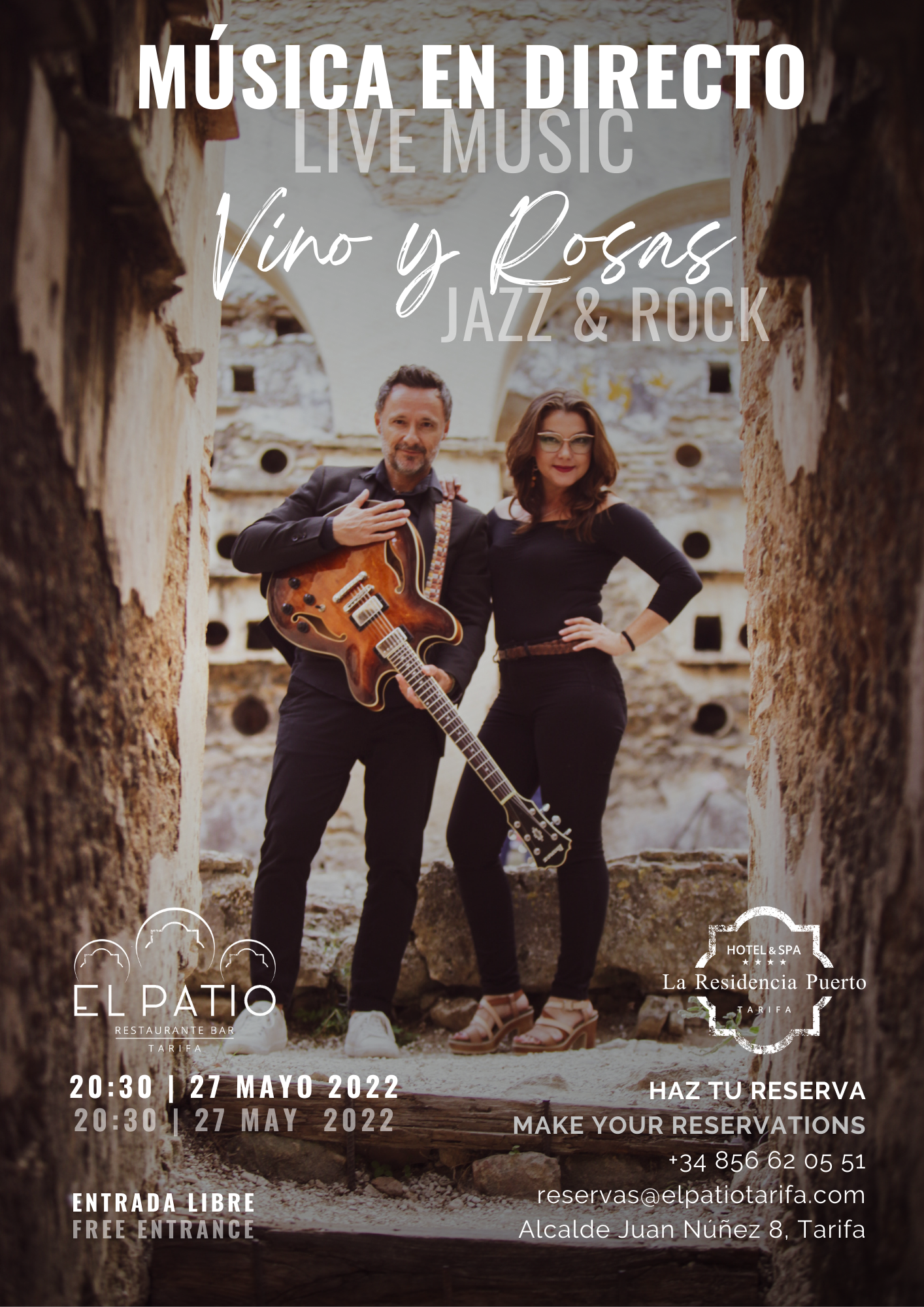 Saltar al contenidoEste 27 de mayo el grupo «Vino y Rosas» actuará en nuestro restaurante «El Patio» con Jazz y Rock
